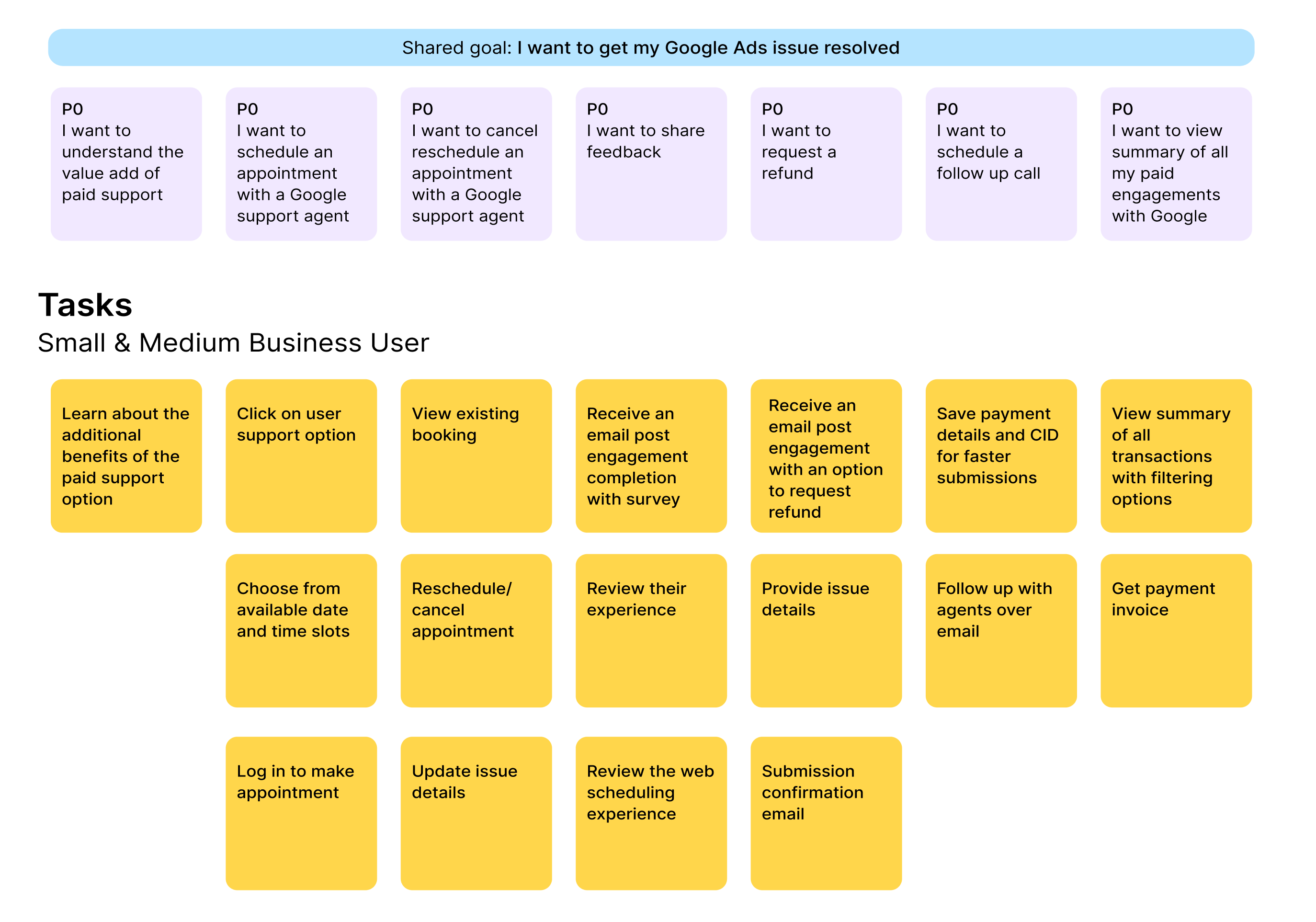 Based on existing documentation, we defined user goals, key tasks, and the end-to-end journey to establish a shared understanding.
