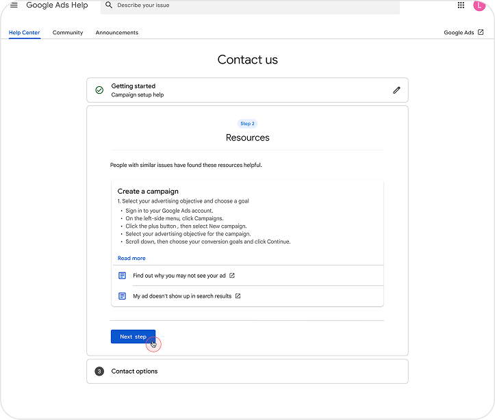 Advertisers search Help Center with no clear path to expert support